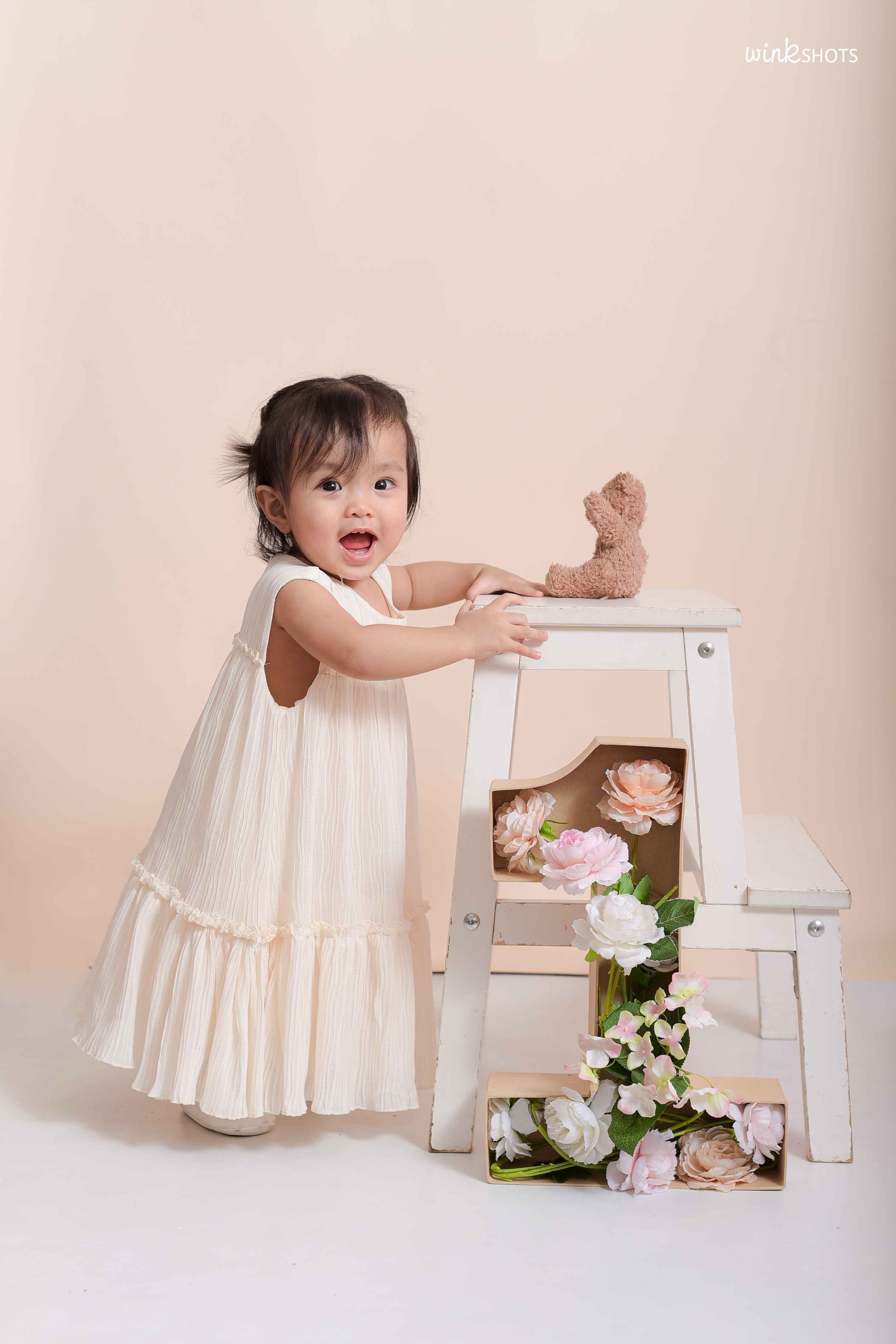 Families from Mendez, Trece Martires, Amadeo, Tanza, and Bailen love booking their pre-birthday photoshoots with us because our studio is conveniently located in the heart of Indang Cavite. Whether you’re planning a themed shoot like this minimalist Castle Theme setup or something more classic, Winkshots Studio makes it easy and fun for your child’s first birthday milestone.
