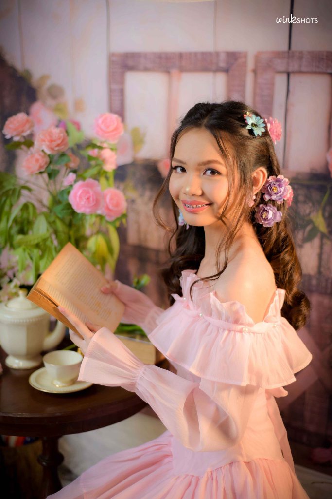 With a dreamy set-up featuring delicate flowers, a vintage teapot, and soft fine-art styling, this 18th birthday studio session feels like stepping into a storybook. Every pose, every detail, every frame is carefully crafted by a professional photographer to create portraits that feel like art something you can proudly frame, display, and treasure for life.