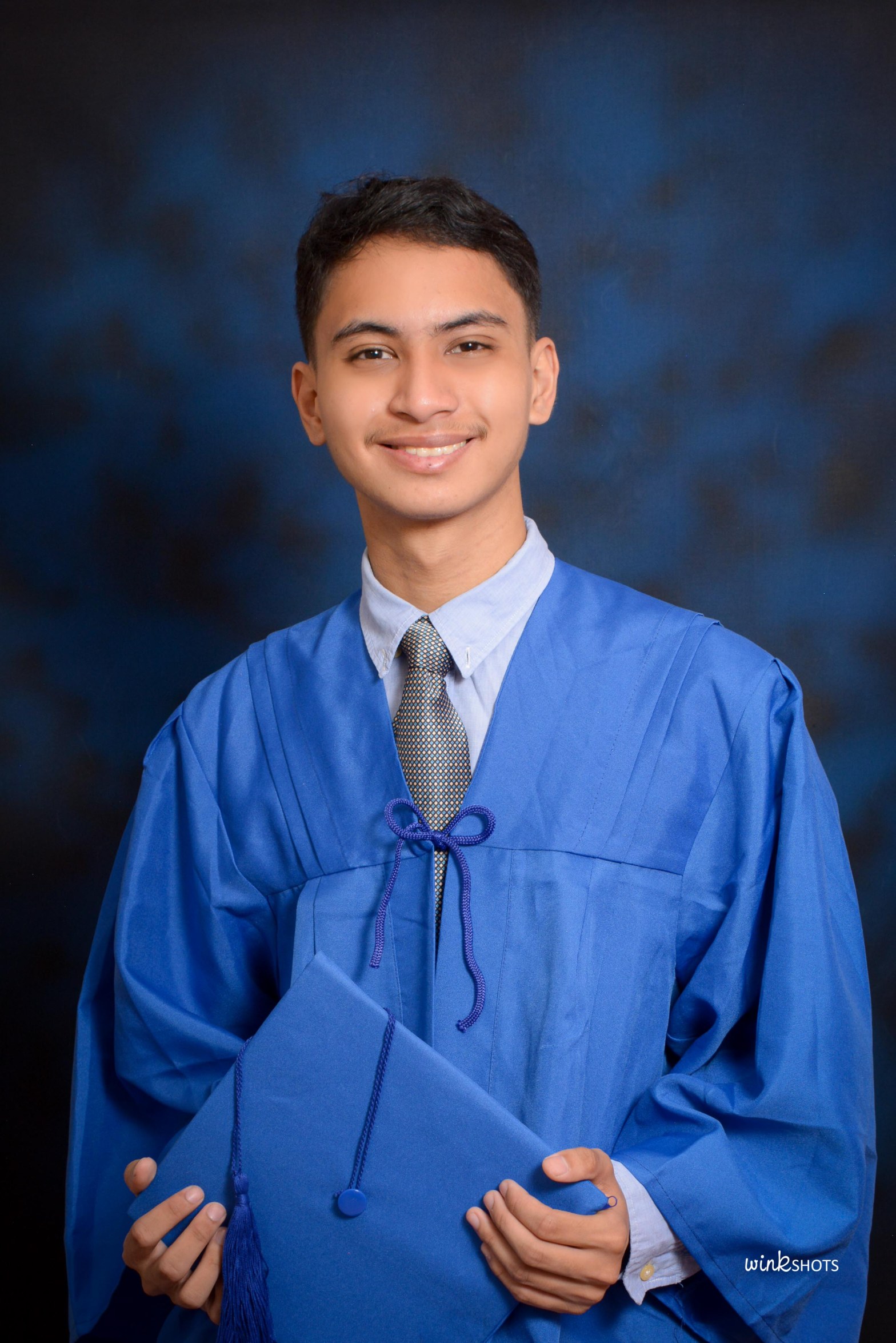 Senior High School Grad Pic Blue Toga