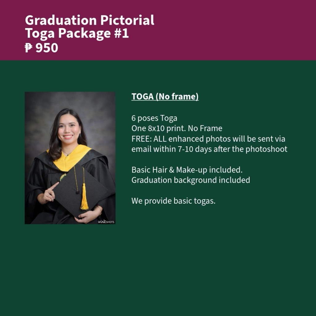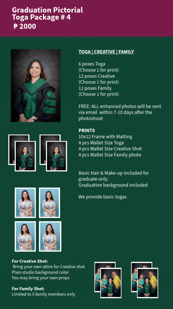 Graduation photo pricing is based on bulk or batch bookings.